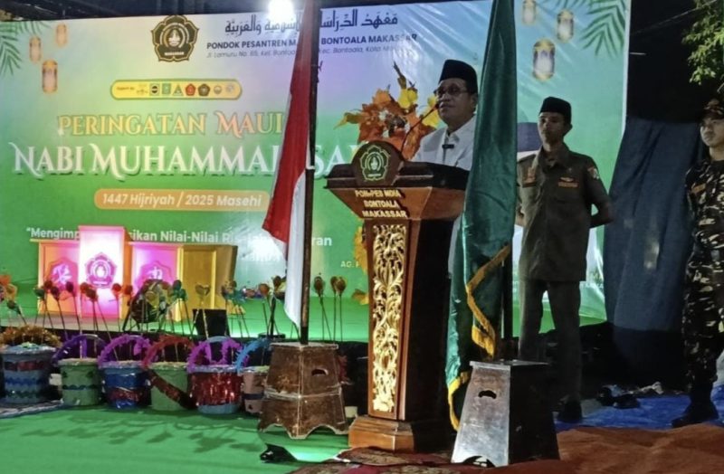Sementara itu, Pimpinan Ponpes MDIA Bontoala Makassar, AG. DR. KH. Abdul Mutthalib Abdullah, menyampaikan bahwa Maulid Nabi merupakan ajang mempertegas komitmen santri dalam mengamalkan ajaran Islam rahmatan lil alamin.